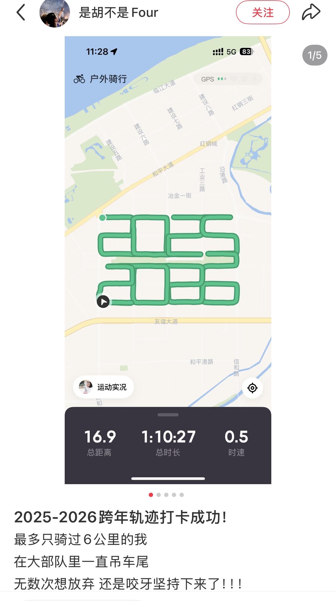 比如这位骑友,直接用骑行轨迹写了一个“马”字,2026年一马当先。