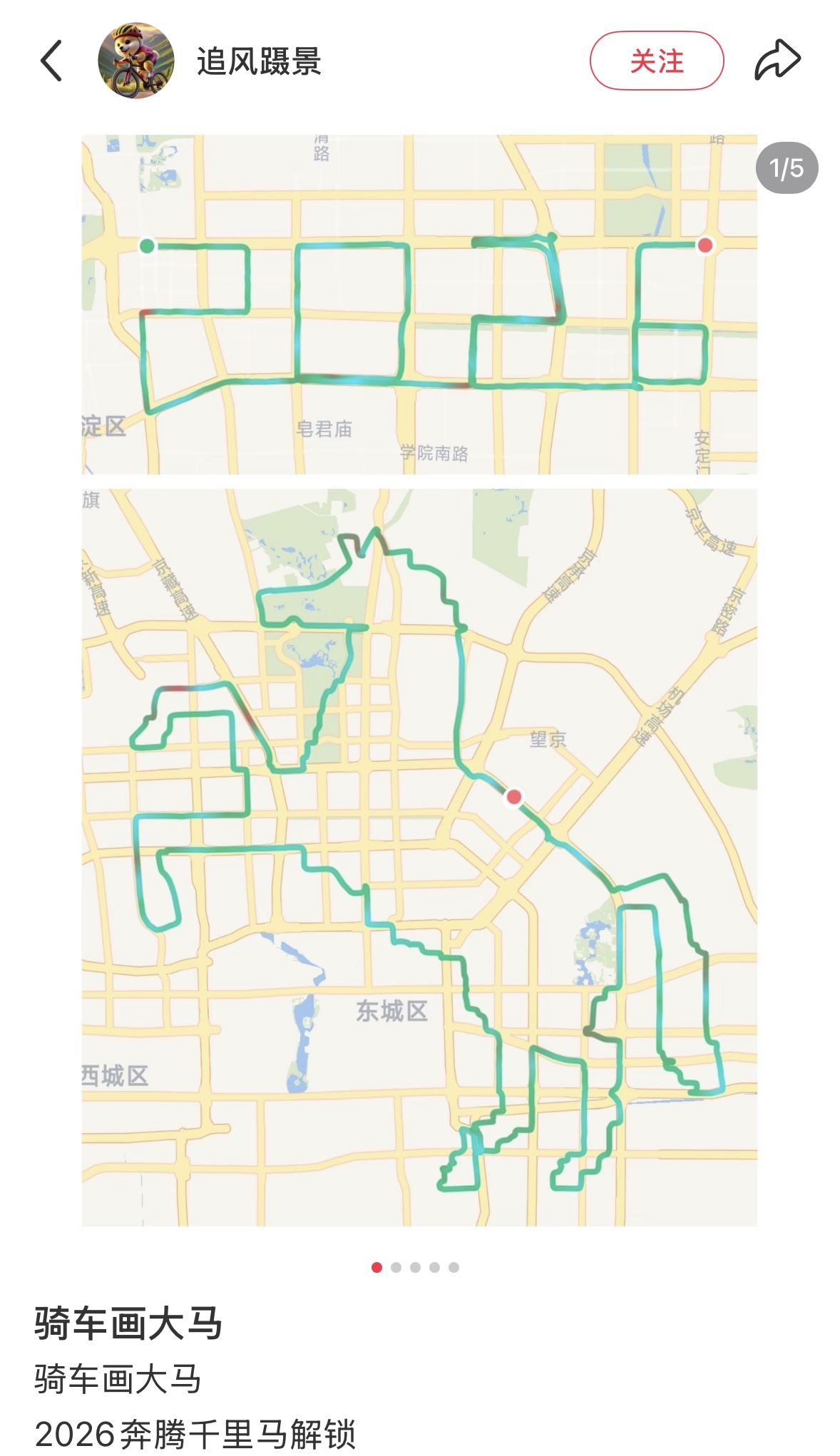 还有这位骑友,在北京穿街走巷,让轨迹慢慢拼凑出骏马的样子。别说,这高头大马也太帅气了!