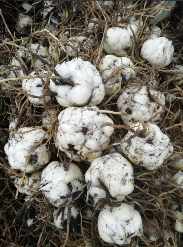 百合一年生萌发的小鳞茎 吴健的研究瞄准的正是百合球根的休眠问题,这直接关乎产业发展的核心痛点。 “从繁育周期来看,百合从种植到开花需要三四年,其中休眠期每年就长达三个多月,休眠不充分会导致开花率低、花期参差不齐,直接影响切花规模化生产,更棘手的是,我国百合种球市场曾长期被进口品种垄断,种植户只能被动接受高价。”