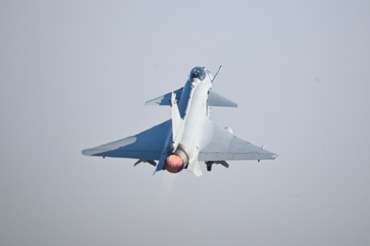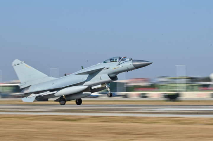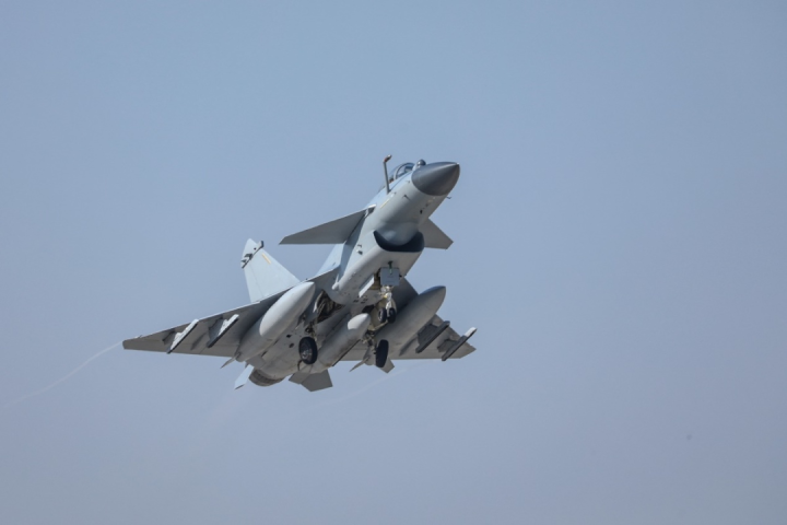 塔台指令下达后 战鹰梯次升空 奔赴目标空域