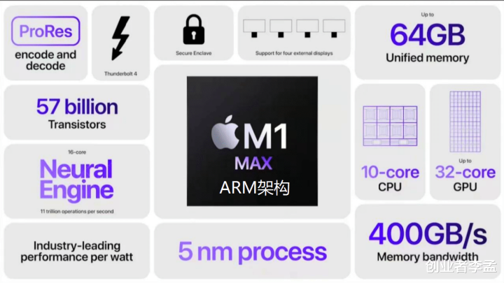 当然性能提升也是显著的,要知道以前用英特尔的都是14nm的制程工艺,但你看人家开始用M系列芯片的时候,电脑也用上了4nm和3nm制程工艺芯片,在性能上也占据优势的! 如果苹果要实现更好优秀的轻薄化、长续航表绚,那么ARM就能帮助苹果实现这个目标方向!在M1芯片上,我们看到了M1芯实现了 x86 难以企及的每瓦性能,MacBook Air 可无风扇设计。