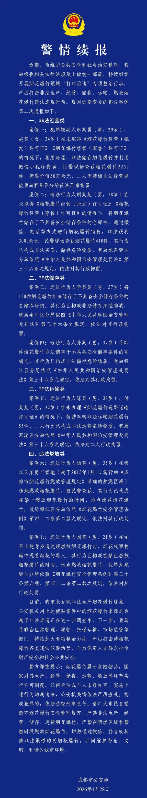 凤凰彩票app下载 成都警方续报七起涉烟花爆竹典型案例