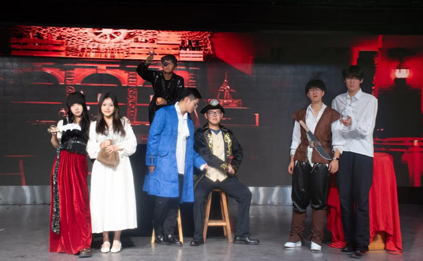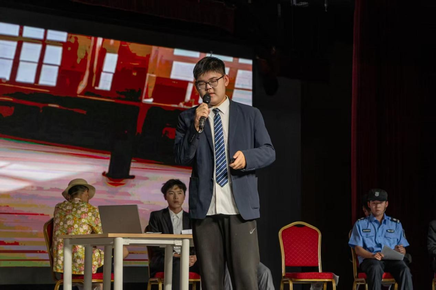 在舞台上表演话剧的张新皓 刚到石大时,我还是个站在台上就会紧张的新人。大一那年,为了挑战自己,我参演小品《遇人不淑》和话剧《十二公民》,一头扎进角色世界里。那段日子,我满心都是对表演的敬畏,只想把角色演“活”,让观众走进故事的深处。 大二接过话剧社社长兼导演的担子,我遇到更多的挑战:从剧本打磨、演员调度,到灯光音效的配合,每一个细节都得反复推敲。我不再只纠结“我演得好不好”,而是操心“这个故事能不能被讲好”。看着社员们从表演生涩到游刃有余,看着剧本里的文字化作舞台上的画面,那种成就感,远比自己站在聚光灯下更为真切。