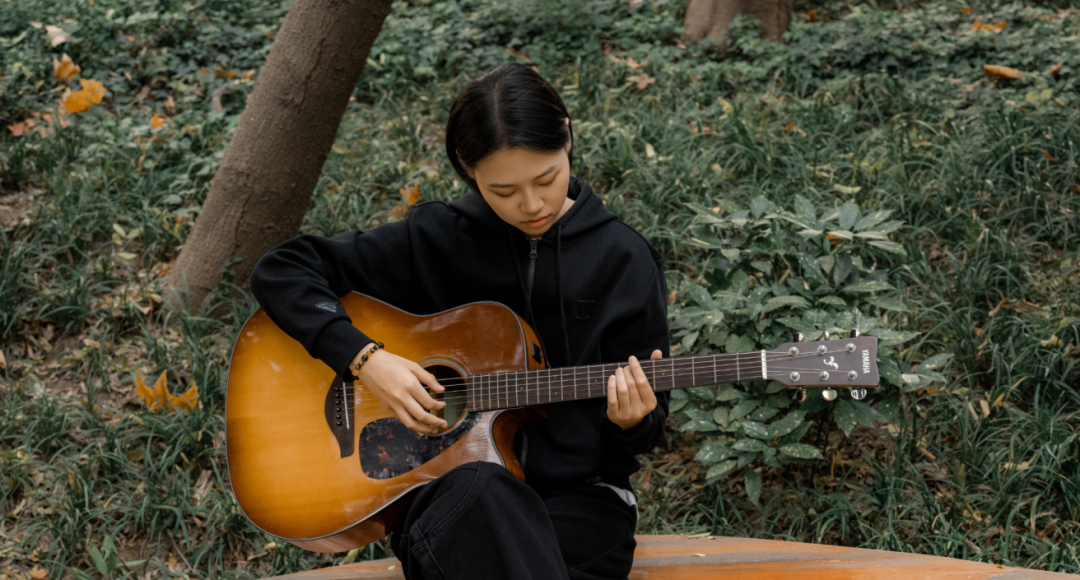在户外弹吉他的程晨璐 能学会一件喜欢的乐器,弹一首喜欢的歌,是件极幸福的事。第一次听到岸部真明的《奇迹的山》,我心里一震,感觉吉他好像会说话,每根弦的振动,都让人心里平静几分,于是我决定自学。 我从C和弦起步,每天都要僵硬地按弦,指腹从发红起泡到磨出茧,倒也没觉得多疼,反而觉得指尖变硬了,按弦更稳了。无数个夜晚反复练习后,我终于能完整弹完第一首歌,余音绕耳时,所有苦练都有了意义。现在琴技虽不精湛,却能在朋友生日时,随手抱起吉他弹首《生日快乐》送上祝福,心里就亮堂堂的。