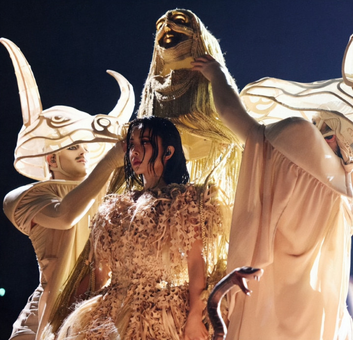 此次的舞台设计非常的新颖,而且科技感满满,据说设计灵感还是来源于《人间乐园》。 演出时可以看到舞台上有一个条30米的机械巨蛇,还有一头通体金色的公牛。