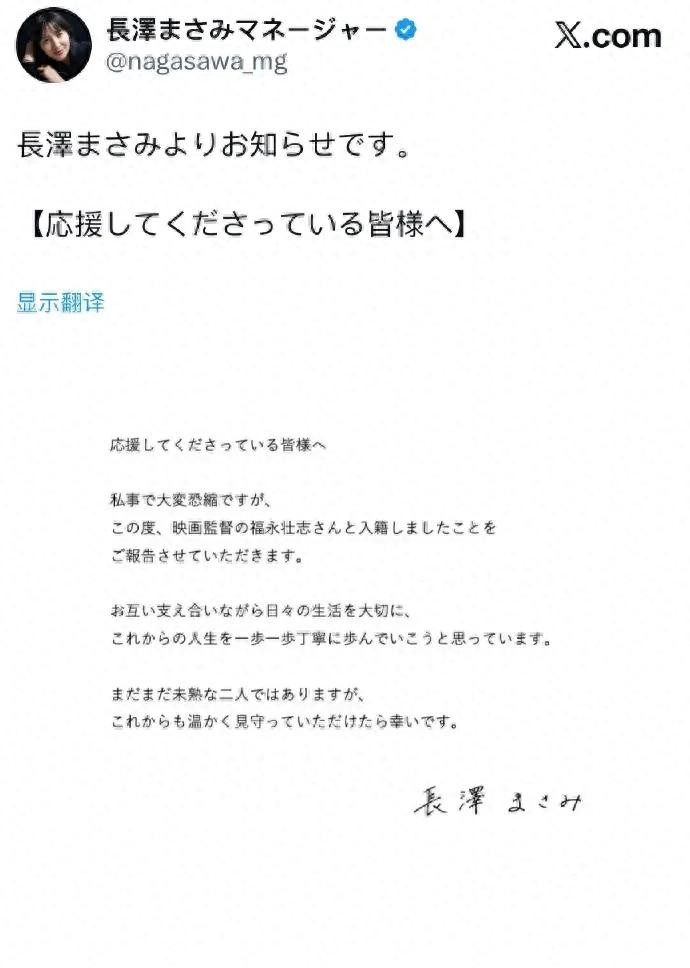 元旦刚过,就被一个重磅消息砸懵了—— {jz:field.toptypename/}38岁的长泽雅美突然发声明,直接官宣自己已经结婚了! 文案里写着“今后会彼此扶持,珍视朝夕,认真携手未来的人生”,一字一句都透着安稳,可对粉丝来说,这简直是猝不及防的入籍暴击啊!