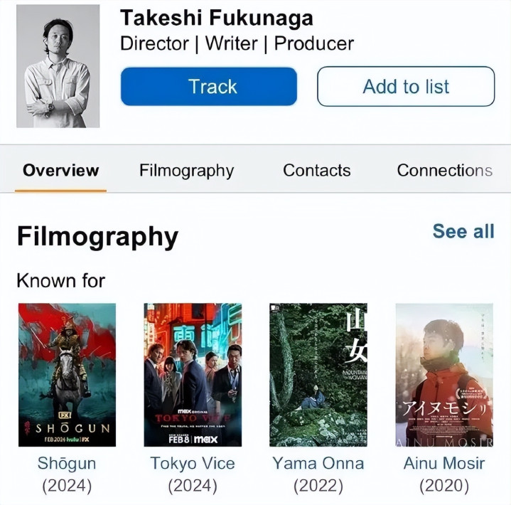 之后的作品更是拿奖拿到手软,翠贝卡电影节、东京国际电影节都有他的身影。 2024年更是高光时刻,参与执导了《东京罪恶》和《幕府将军》两部英文剧集,前者冲进了Netflix全球热度榜前十,后者更猛,直接斩获25项艾美奖提名。 在六位执导《幕府将军》的导演里,他还是唯二能续订第二季的,单集片酬都超1000万日元了,妥妥的上升期实力派。