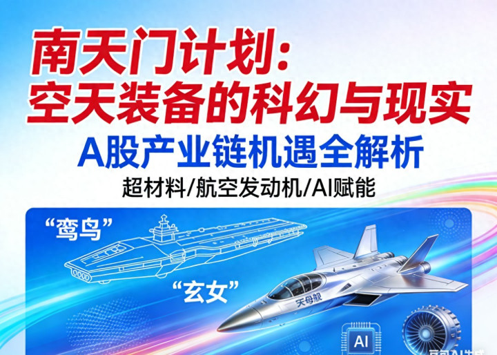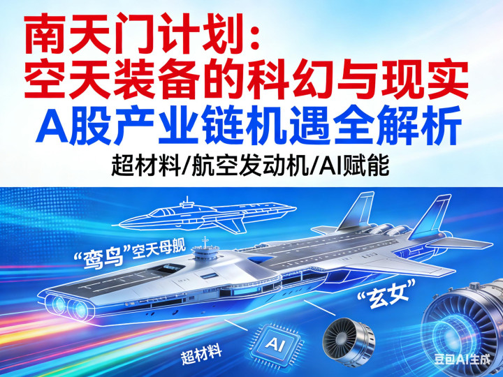 白帝战机 全频段隐身,有人/无人模式切换,自适应发动机,可变翼结构,可快速切换任务属性 紫火垂直起降平台 通用垂直起降设计,在天津国际直升机博览会首次亮相,主打垂直起降技术突破 计划整合了高超声速飞行、超材料隐身、AI赋能决策、定向能武器等前沿技术,将离散的尖端技术融合为以科幻战机为载体的体系构想,成为未来空天技术发展的重要探索方向。 二、A股相关核心个股梳理 “南天门计划”涉及的超材料、航空发动机、无人机、AI赋能等技术方向,对应A股产业链核心标的如下: