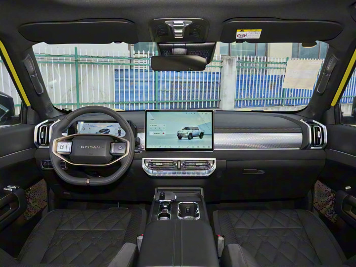 进入车内,内饰打破传统皮卡的粗糙感,延续日产“移动大沙发”的舒适基因,将硬派机械感与豪华质感巧妙融合。座舱采用大面积软性皮质包覆,14.6英寸悬浮式中控屏搭配全液晶仪表,构成双屏交互系统,搭载高性能车机芯片,操作流畅顺滑,支持语音控制、在线导航、手机互联等功能,响应迅速无延迟。座椅主副驾配备通风、加热、按摩功能,舒适性拉满,后排座椅宽大厚实,腿部空间充裕,即便长时间乘坐也不易疲劳。全车配备多处储物空间,兼顾驾乘人员随身物品存放,货箱常规容积满足商用需求,搭配6kW大功率对外放电功能,支持5种放电场景,露营、户外作业等场景的用电需求均可轻松应对。