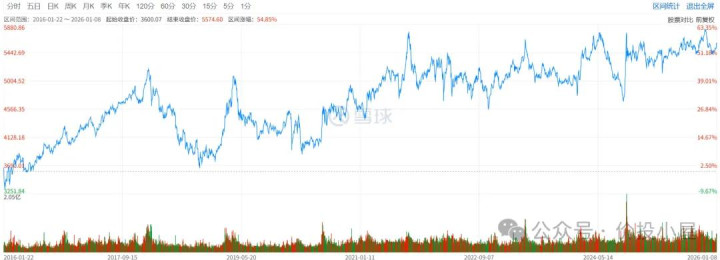 2. 估值很重要,别在牛市顶峰接盘。 再好的公司,买贵了也难受。2021年初,很多白马股估值历史最高,这时候冲进去“攒股”,接下来两年的回调就足够磨掉你所有耐心。股息率是一个很好的估值参考指标,通常股息率处于历史高位时,股价可能相对低估。 我在前面文章中每周都会更新观测银行股的股息率和估值情况,小伙伴们也可以自己动手做一张股息率和估值表。 3. 尝试建立你的“分红组合”,而不是赌一只股。 不要把所有钱押在一两个行业。构建一个包含金融、公用事业、资源等不同板块高股息股票的组合,可以平滑波动。心态稳了,才拿得住。 当然如果你对某个行业、某家企业已经极其理解,那么全仓一只股也是可以的。集中投资和分散投资并无对错,关键在于你的理解程度。 4. 理解“红利策略”的周期。 高股息策略不是年年都能跑赢。在牛市亢奋期,它通常很寂寞;但在市场震荡或下行期,它的防御性就体现出来了。接受它有时会“躺平”,这是策略的一部分。 我们来对比以下中证红利指数和创业板指数: 中证红利指数(近10年):