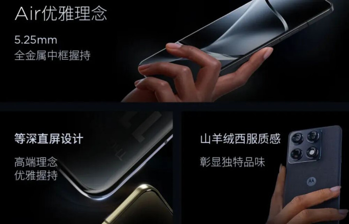 其他细节方面,这款联想moto X70 Air Pro将配备1.5K超窄边圆偏振护眼屏,京东方Q10材质,超声波屏下指纹。核心搭载第五代骁龙8,配备 BOSE 调校的全对称双 1511E 扬声器以及 X 轴线性马达,支持 IP68+IP69 级防尘防水。 |