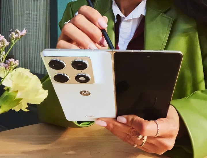 与此同时,Razr Fold 还后置了一颗 5000 万像素的索尼 LYTIA 主摄、一颗 5000 万像素超广角摄像头、一颗支持 3 倍光学变焦的 5000 万像素潜望式长焦摄像头,支持录制杜比视界视频。 其他细节方面,这款Razr Fold 还支持 AI 功能和 Moto Pen Ultra 手写笔。