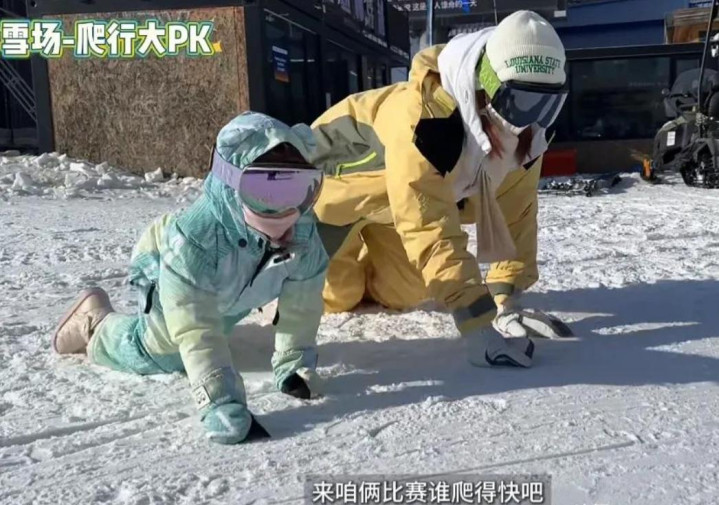 两母女从一开在雪地里爬来爬去再到慢慢适应外面的温度,郑恺亲自教女儿滑雪,5岁安娜摔了几次之后就学会了,很大胆的冲下坡路,小孩子的重心也比较稳,苗苗就不行了,一滑就摔跤,被女儿嘲笑:妈妈摔了15个屁股蹲。