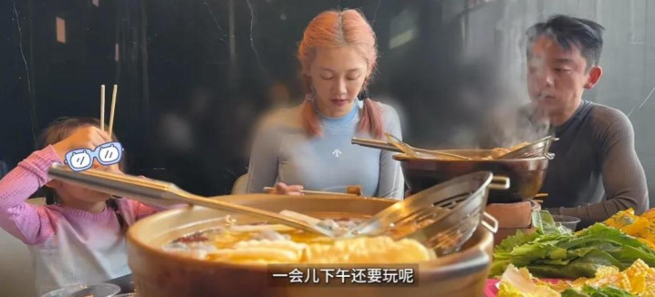 运动之后就容易饿,一家三口又回到酒店用餐,吃着小火锅也很惬意啊!感觉苗苗染的这个发色确实不咋得。
