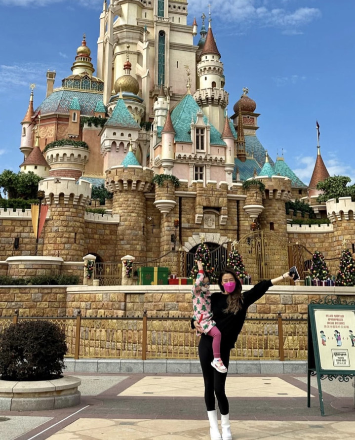谢婷婷与女儿Sara并非第一次到香港迪士尼乐园游玩,在2022年底,她第一次带女儿回香港探亲的时候母女就已经来过迪士尼游玩了,那时候Sara还没有满4岁,很多时候还需要谢婷婷抱着走。有意思的是,当时谢婷婷也在有米奇头像的花圃前给Sara拍照,不过Sara太矮了,她还要仰头才能看到花圃,这一转眼,小女孩也长大了,身高都已经超过谢婷婷的腰间,而谢婷婷都抱不动她了。虽然是第二次来,但是对她来说一切都还是新鲜的,所以她玩得好开心。